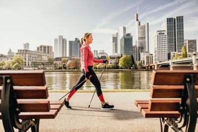 Weight loss - Nordic Walking uses more energy than normal walking. Your heart rate will be higher compared to regular walking. In addition, your stride length will be longer and with the help of Nordic Walking techniques you will be able to take fewer steps and increase your walking speed. Because Nordic Walking uses more of your energy and raises your heart rate with less effort, it is a more effective activity, meaning it can help you lose weight faster.